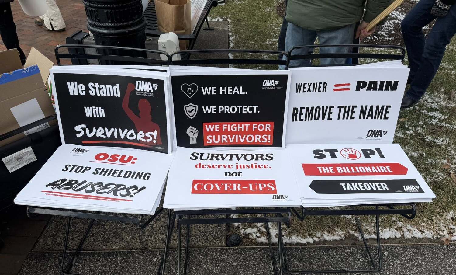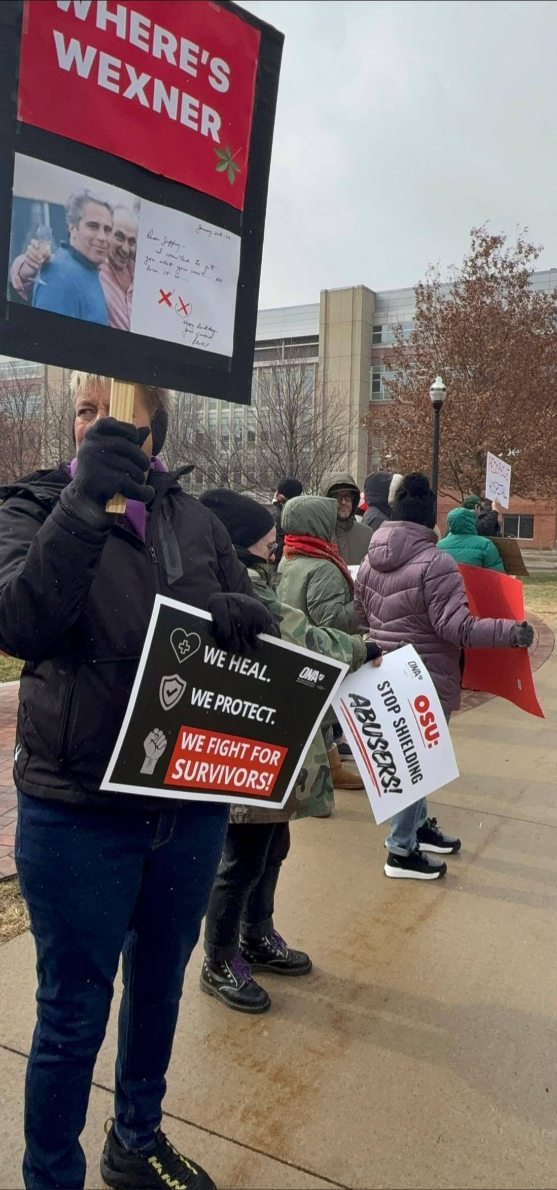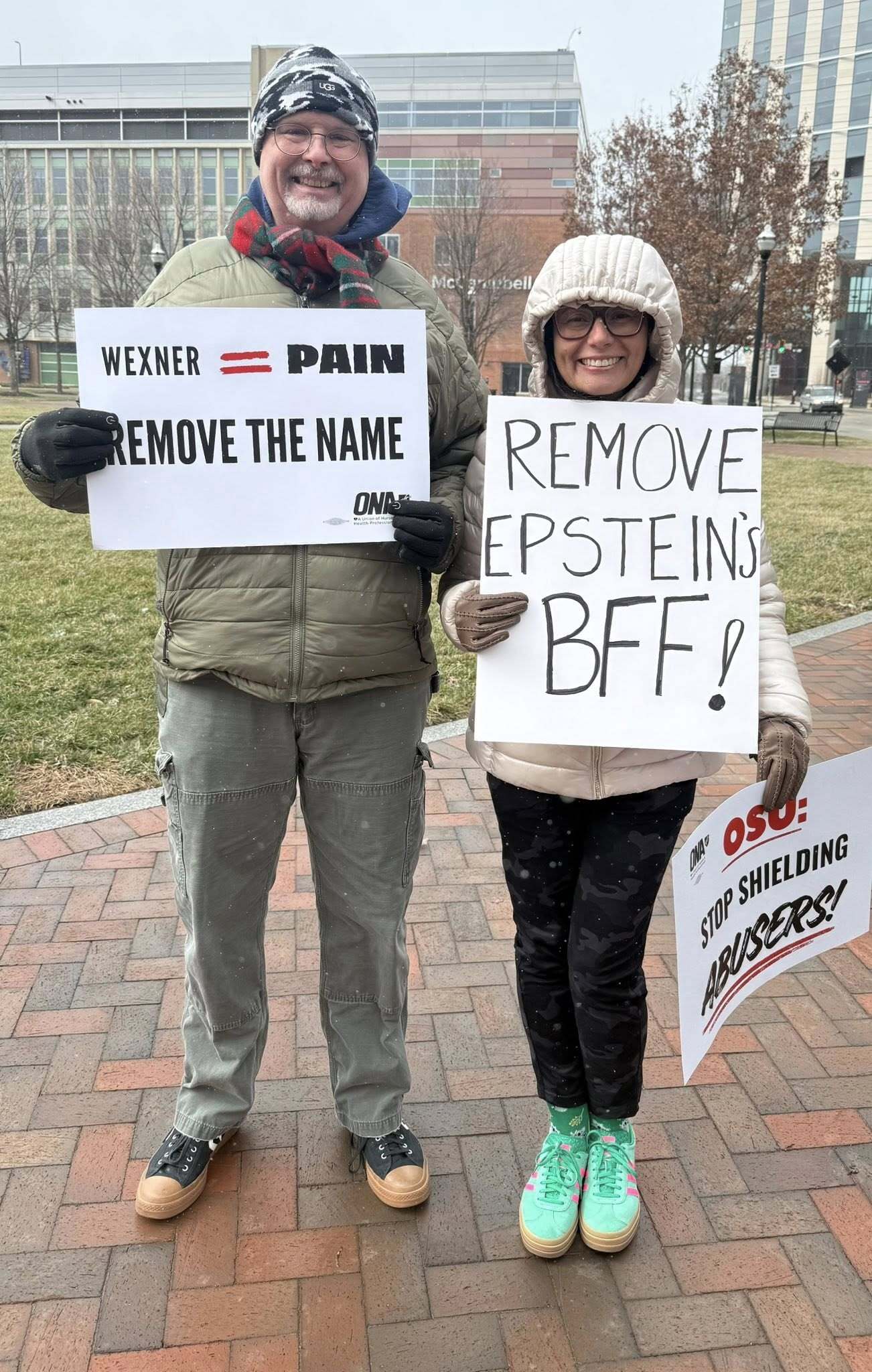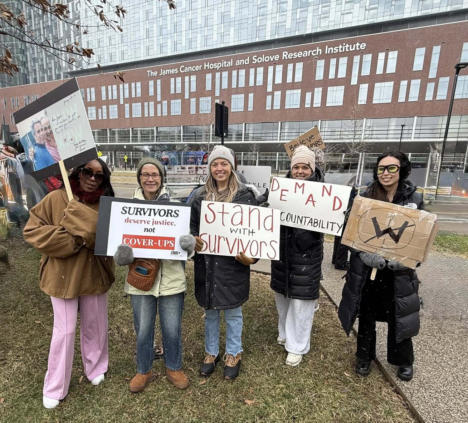 If there is no affirmative commitment to remove the Wexner name, we will hold an informational picket on February 22 at noon (see event recap in this newsletter) at Phyllis A. Jones Legacy Park to stand visibly and unapologetically with survivors — during the opening of the new University Hospital, a moment that should represent healing but remains overshadowed by the controversy and pain attached to the Wexner name.