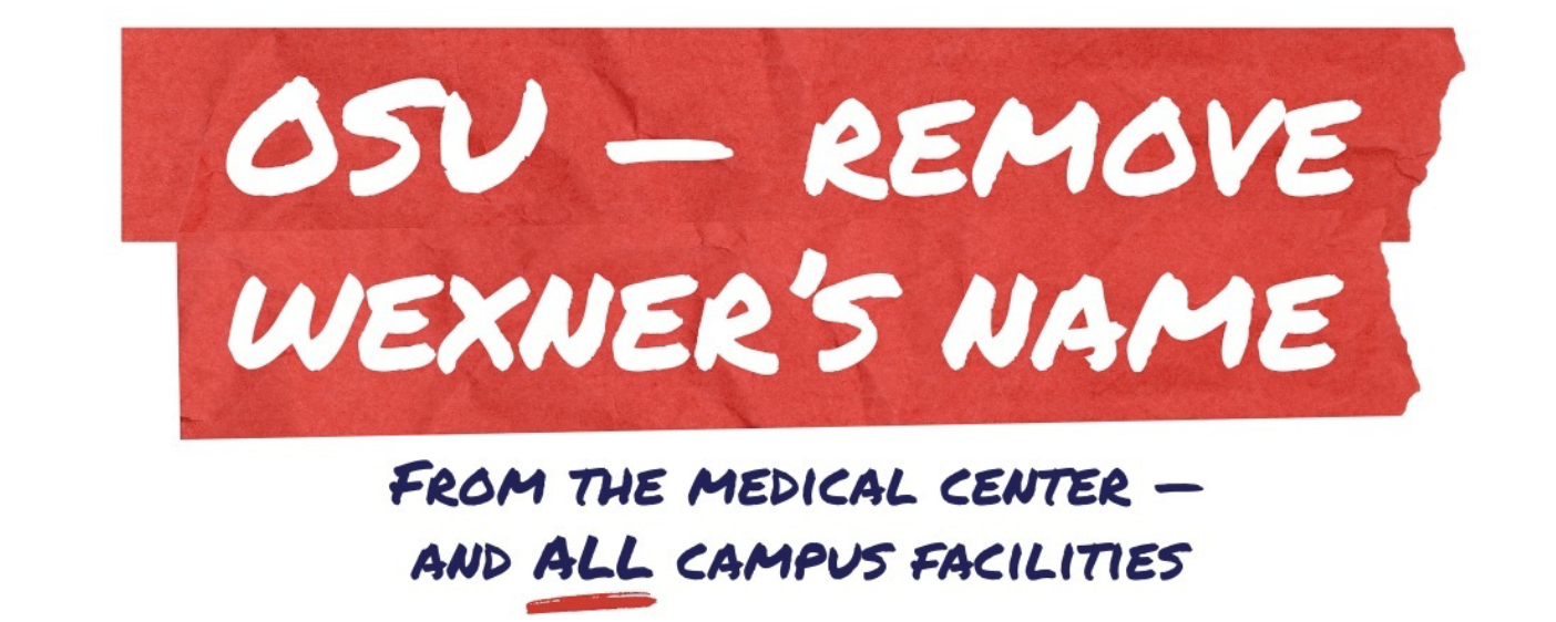 It compels us to demand the removal of the Wexner name from The Ohio State University Wexner Medical Center and all campus facilities.